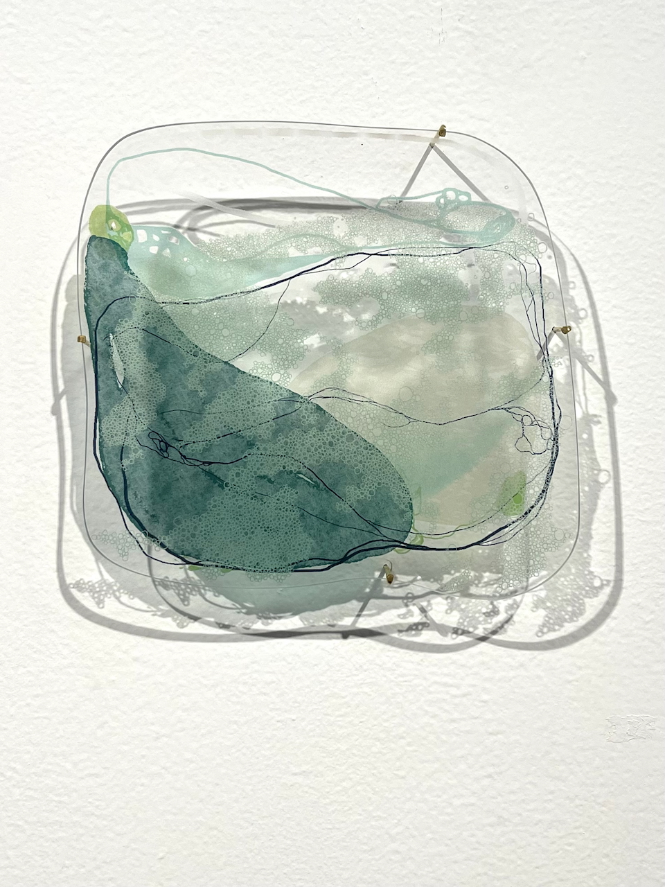 Underwater, in ocean, somatic, cognitive and aesthetic senses are ignited and sharpened. Mark-making reifies feeling; recordings of sensuous experience, each layer a fragment of remembered terrain or sensation. Assembled together, they enter into collective dialogues. I draw underneath, over surfaces, kindling a new spatial experience akin to diving, swimming.