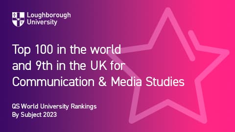 Loughborough has been ranked in the top 100 worldwide universities and 9th in the UK for Communication and Media Studies by the global QS higher education league table. 2023 marks the tenth consecutive year Communication and Media Studies has appeared in the top 100.